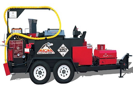 The MAGMA 410 is the biggest/ baddest melter in the industry. With 410 Gallons, dual loading doors and tandem axles, the 410 MAGMA puts the product down.